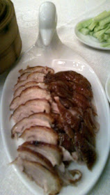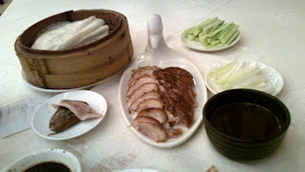 便宜坊的皮肉分切法我比較喜歡, 鴨湯倒是和全聚德一樣不如我意, 太"清"了. 我又點了一張"抛餅", 很香很酥, 好得很.