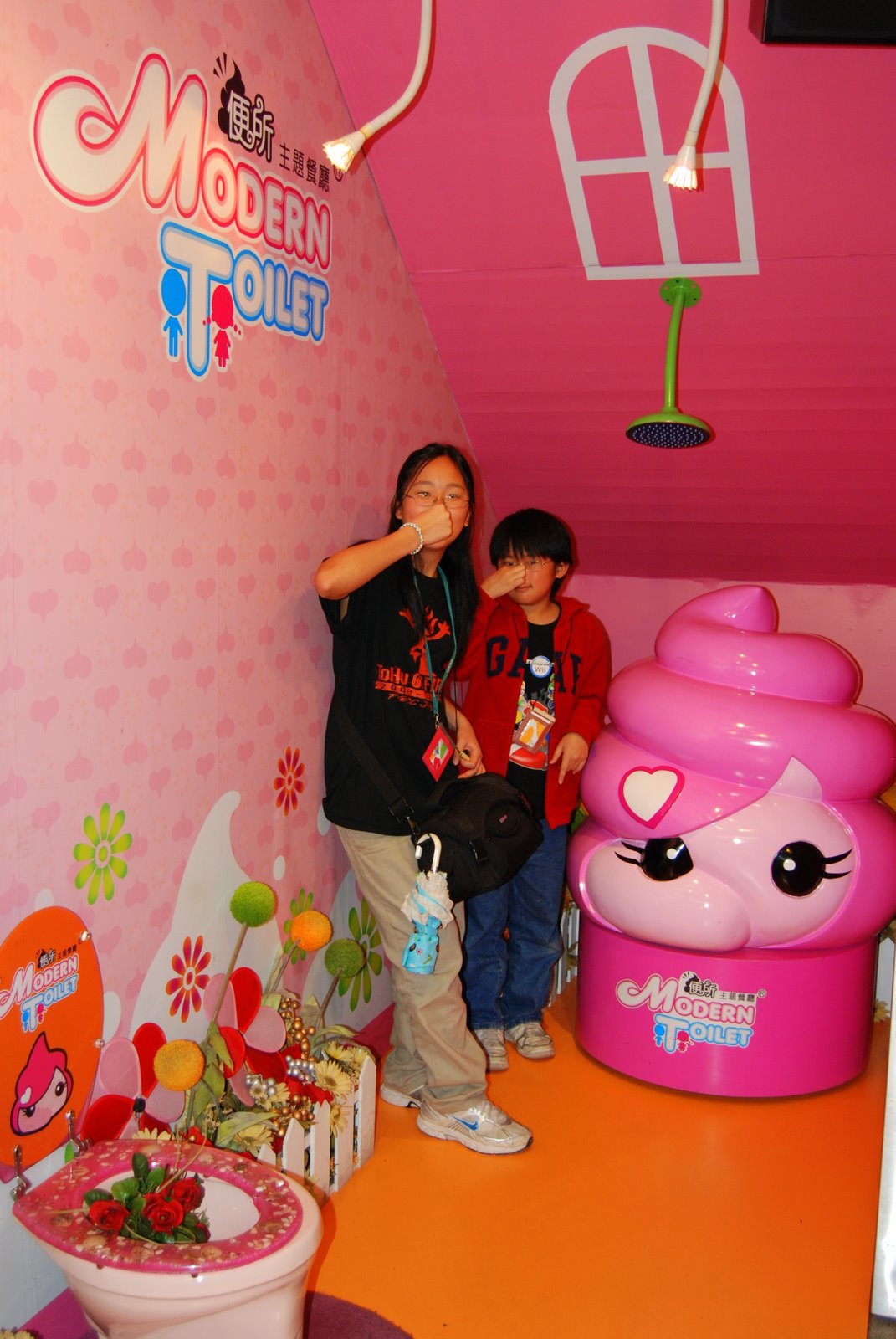 餐廳在二至四樓, 一樓樓梯下有馬桶 (聽說有路過小孩會不小心上一號), 還有粉紅色的可愛"便便"歡迎你, 没有臭味, 是假裝很臭的