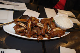 首先,他家的菜是很極大盤的,我們叫的韓國燒牛仔骨12.95USD, 極大盤的,好多好多肉,大概三連骨的肉有十多塊,但問題是,他所用的肉是用質地不好的牛仔骨用小蘇打泡軟的,肥油很多,肉筯還是很多,肉雖己被小蘇打泡軟,但肉很難咬斷。雖大盤但實在不好吃。