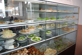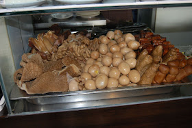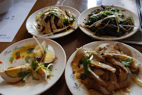 此外,他家的小菜也很像台灣路邊攤的小菜,大陸的路邊攤都「很」髒,是的,台北的路邊攤有髒的,但和大陸的髒比起來,那是已進步了數十年的髒法,大陸的路邊攤的髒是不同等級的髒,所以要吃到台灣路邊攤的小菜,在上海還真難吃到,但這家的小菜好,滷味和台北路邊攤口味一樣,但又夠清潔。我叫了滷豆干,滷海帶,滷蛋,滷素腸,都很入味,腐皮包豆芽也很棒!