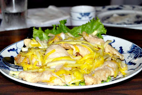 最先上的是「二張皮」及「魚肉水餃」,「二張皮」是熱抄料加上芥苿及醬汁拌入涼粉皮及各類菜絲。